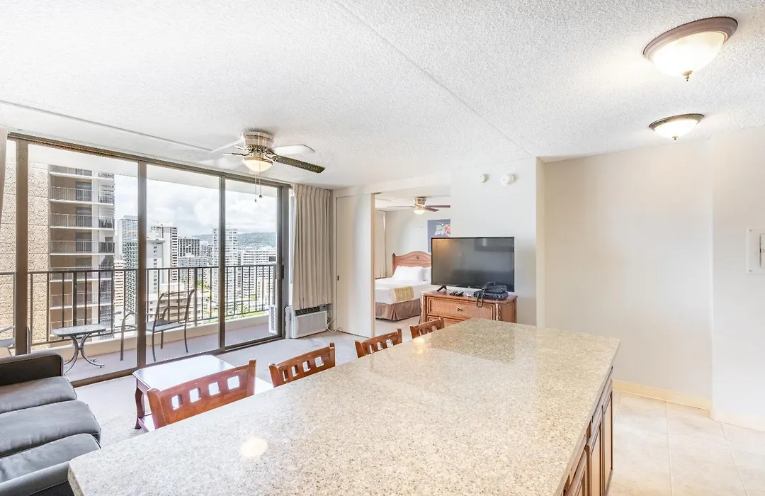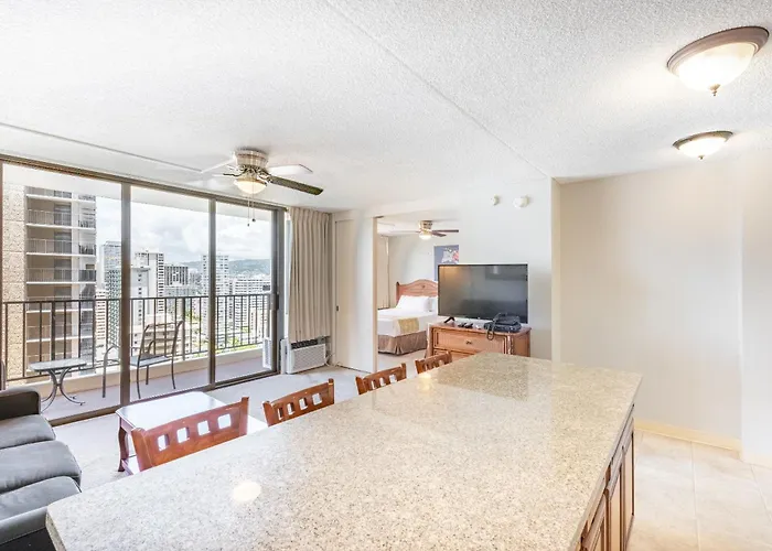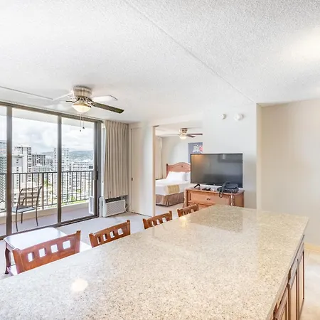 50m²のWaikiki Banyan High Level Condo With Private Lanai Condo ホノルルはハワイ・アメリカ陸軍博物館からたった1.8キロメートルで、デューク・カハナモク・ラグーンから徒歩で約25分の場所にあります。 温水プールを提供するホテルは、ホノルル動物園すぐ近くです。